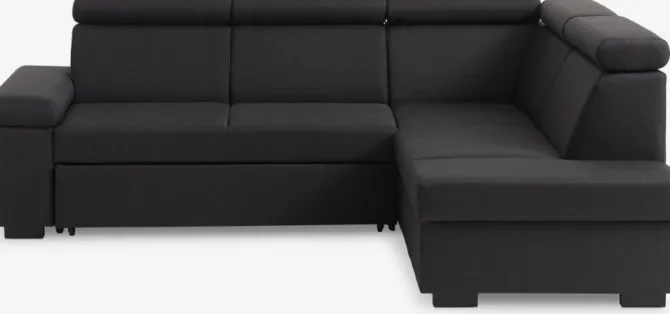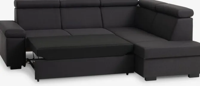 3-personers sofa i stof. Sofaen kan nemt laves om til en seng. Sæde- og ryghynder i skum. Med opbevaringsplads. Kan ikke spejlvendes. Udslået liggemål 126×182 cm. B246 x H87 x D187 cm