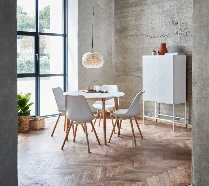 JEGIND Ø105 bord hvid + 4 KASTRUP stole hvid