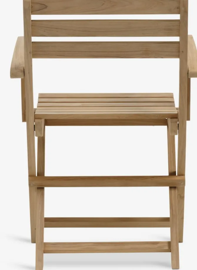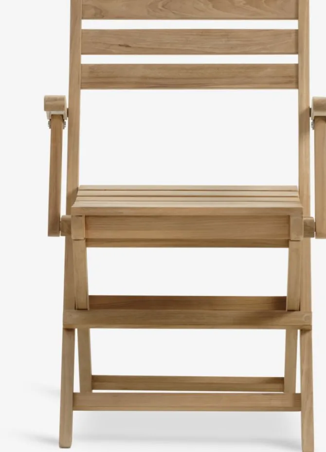 Klapstol i massiv FSC®-teak. Teak er en elegant og holdbar hårdttræstype med et højt indhold af naturlig olie, som forhindrer fugt i at blive absorberet i træet. Med tiden udvikler teak en sølvgrå patina. Havestolen kan klappes fladt sammen, hvilket gør den nem at bære og opbevare.