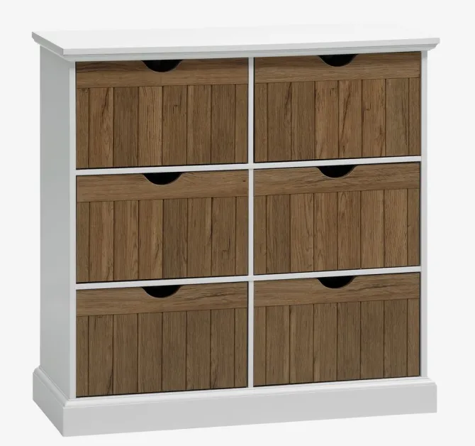 Kommode 6 skuffer OLDEKROG egefarve/hvid