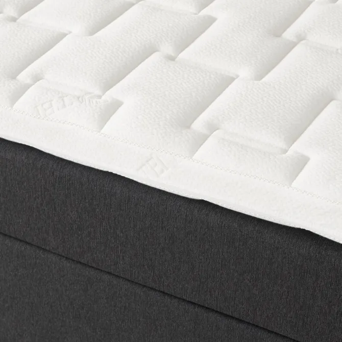 Kontinentalseng 180×200 cm. 2 vendbare springmadrasser med multipocket-fjedre 500/m², polstret med koldskum og purskum. Madrassen er inddelt i 7 komfortzoner, hvilket giver en præcis og optimal støtte. 1 topmadras, 10 cm tyk med kerne af åndbar latex, der effektivt leder overskydende varme væk. Det vaskbare strækbetræk er kraftigt quiltet med purskum. Betrækket er fremstillet med fugttransporterende lyocell. Basen består af 2 boxmadrasser med pocket-fjedre 250/m², inddelt i 7 komfortzoner. Med sensorstyret orienteringslys under sengen. Inkl. ben. Ekskl. gavl.