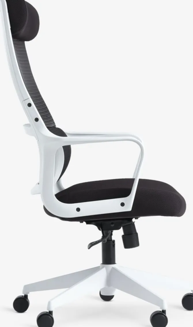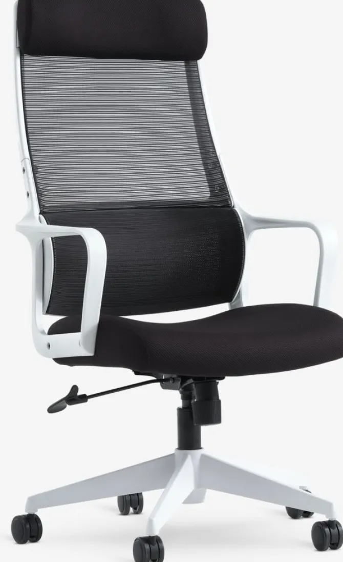 Stof og mesh. Med lændestøtte, justerbar nakkestøtte og justerbar højde. B63 x H115-125 x D83 cm
