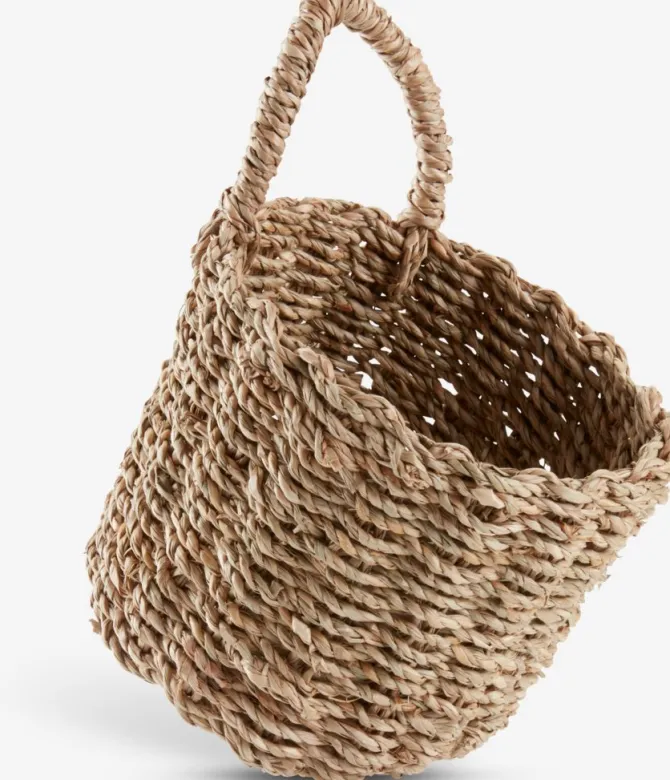 Vævet søgræskurv med en naturlig farve, der komplementerer en række forskellige interiørstile. Kurven kan bruges til opbevaring eller som plantekrukke til små kunstige planter. Håndtaget giver dig mulighed for at hænge kurven på en væg. B14 x L14 x H13 cm