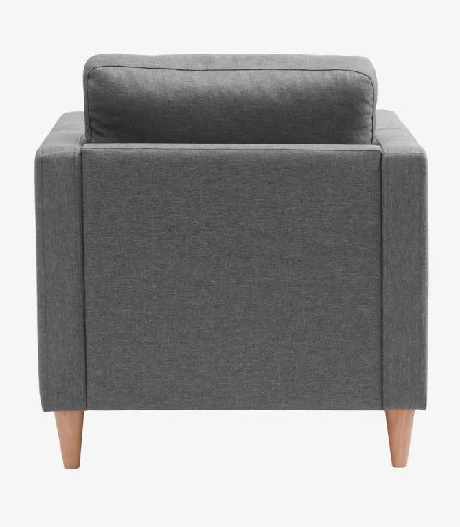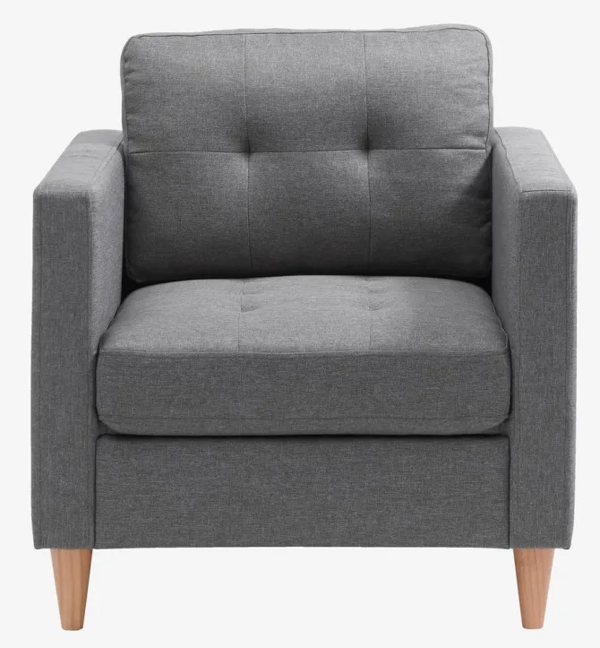 Stof. Sæde- og ryghynder i skum. Ben i massivt træ. B84 x H78 x D75 cm
