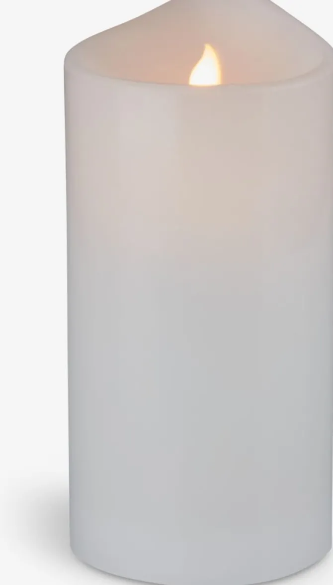 Råhvidt LED bloklys med realistisk flammeeffekt. Dette dekorative lys er ideelt til indendørs brug og skaber en hyggelig atmosfære med sit varme lys på 2600 K. Bloklyset har en praktisk timerfunktion, der tænder lyset i 8 timer og slukker det i 16 timer. Det har en batterilevetid på op til 80 timer og kræver 2 stk. AA-batterier (medfølger ikke). Perfekt til at tilføje et beroligende lys til enhver indretning. Ø10 x H19,5 cm
