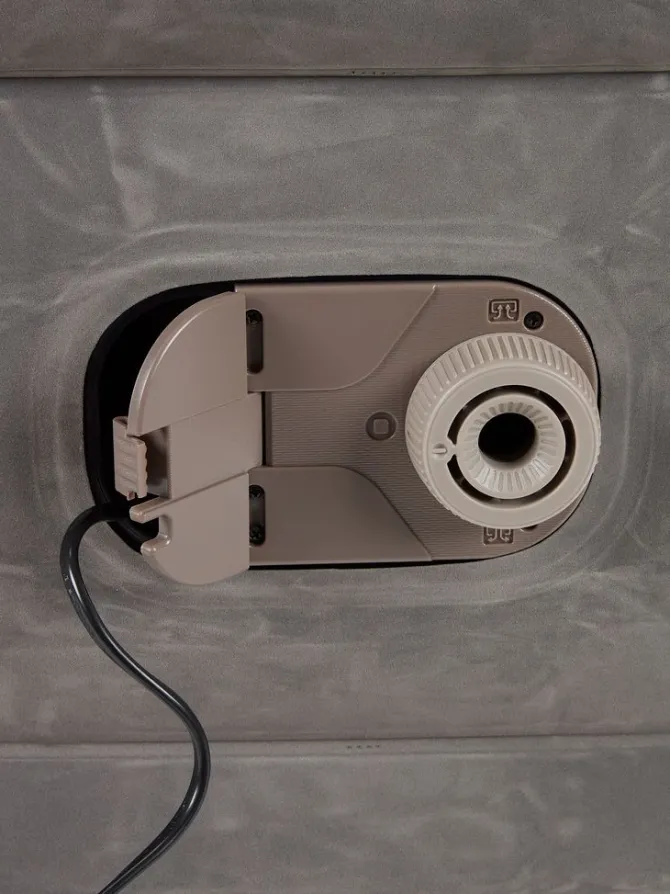 Luftmadras i PVC med blød overflade af velour. Den indvendige konstruktion er med stabiliserende TRITECH邃ælker. Med indbygget elektrisk pumpe. Inkl. opbevaringstaske. B152 x L203 x H46 cm