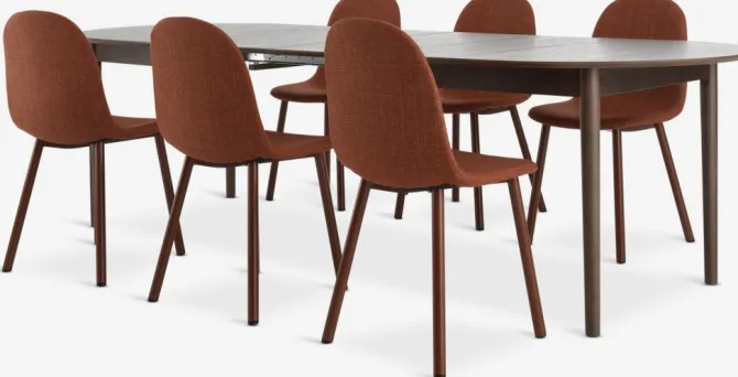 MARSTRAND L200/280 bord mørk eg + 4 EJSTRUP stole terrakotta