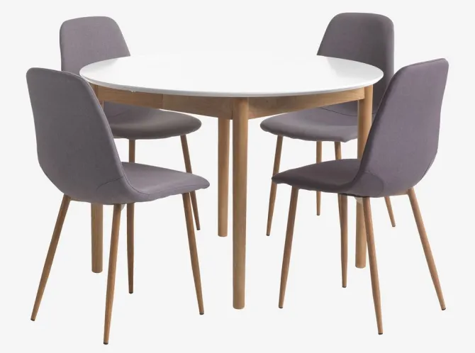 MARSTRAND Ø110 bord hvid + 4 JONSTRUP stole grå
