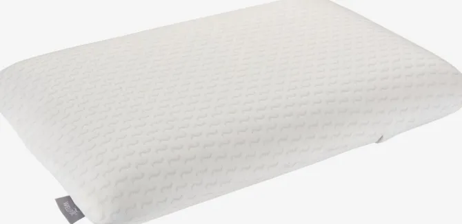 Memory foam pude 40x60x11 cm i trykaflastende AIR memory foam, som former sig hurtigt og præcist efter nakke og skuldre, selv i et køligt sovemiljø. Betræk i 100% polyester, som kan vaskes ved 60°C.
