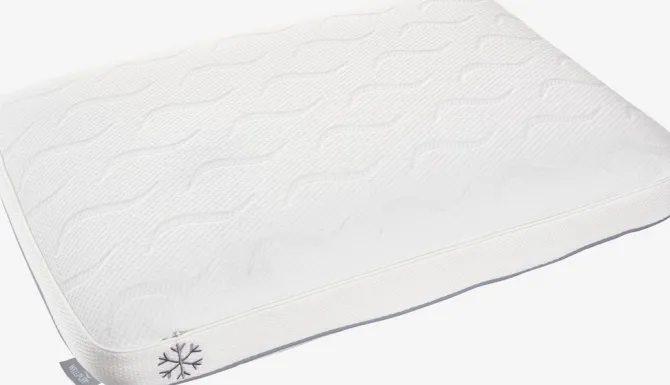Memory foam pude 40x60x13 cm i trykaflastende AIR memory foam. AIR memory foam former sig hurtigt og præcist efter nakke og skuldre, selv i et køligt sovemiljø. Pudens ene side har et lag af kølende gel, som giver dig mulighed for at skifte mellem en almindelig og en køligere side. Betræk i polyester, med kølende polyethylen på den ene side, som kan vaskes ved 40°C.
