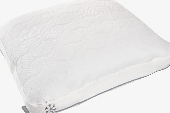 Memory foam pude 48x58x15 cm i trykaflastende, strimlet AIR memory foam med kølende gel. AIR memory foam former sig hurtigt og præcist efter nakke og skuldre, selv i et køligt sovemiljø. Pudens ene side har et lag af kølende gel, som giver dig mulighed for at skifte mellem en almindelig og en køligere side. Pudens højde kan justeres ved at fjerne noget af fyldet. Betræk i polyester, med kølende polyethylen på den ene side, som kan vaskes ved 40°C. Quiltet med AIR memory foam.