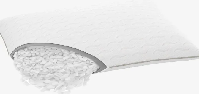 Allergivenlig memory foam pude 48x58x15 cm i trykaflastende, strimlet AIR memory foam. AIR memory foam former sig hurtigt og præcist efter nakke og skuldre, selv i et køligt sovemiljø. Pudens højde kan justeres ved at fjerne en del af fyldet. Betræk i 100% polyester, som kan vaskes ved 40°C. Betrækket har fået en antimidebehandling, som hjælper med at begrænse mængden af støvmider. Quiltet med AIR memory foam med bambus trækul.