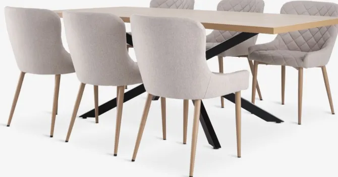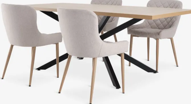 NORTOFT L200 bord + 4 BELLINGE stole sand/eg