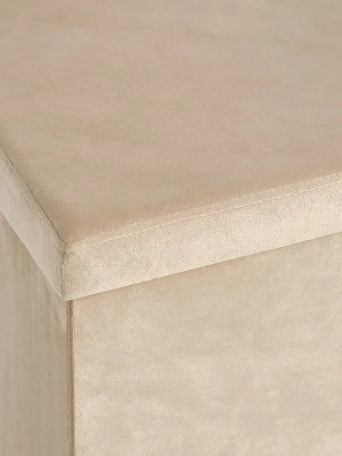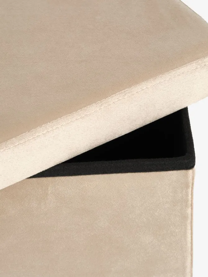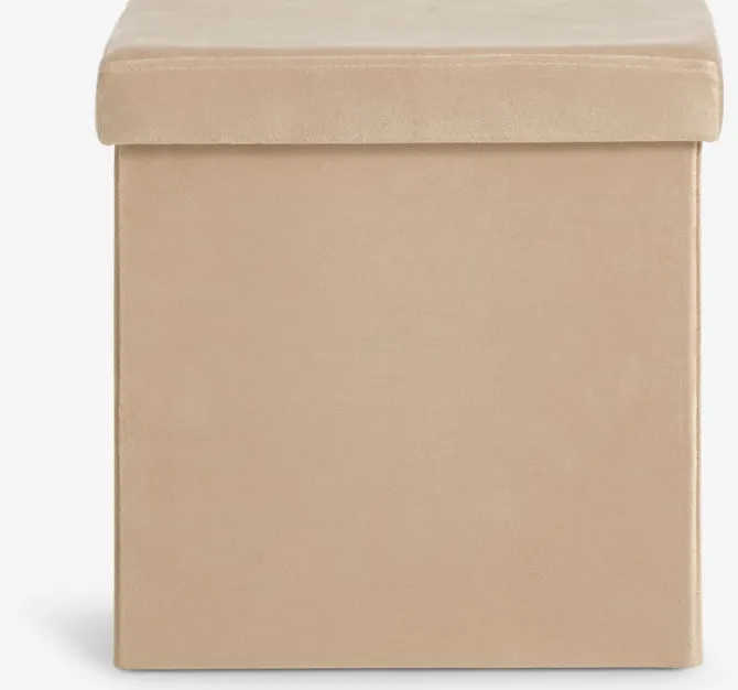 Velourstof. Kan klappes sammen. Med opbevaringsplads. B38 x H38 x D38 cm