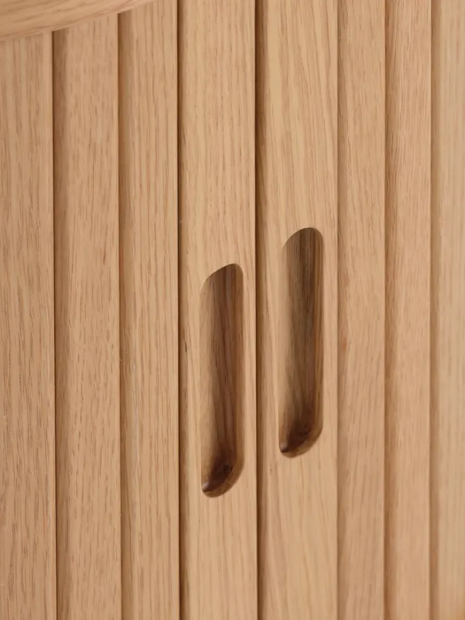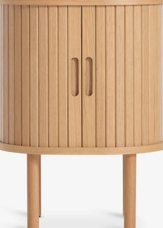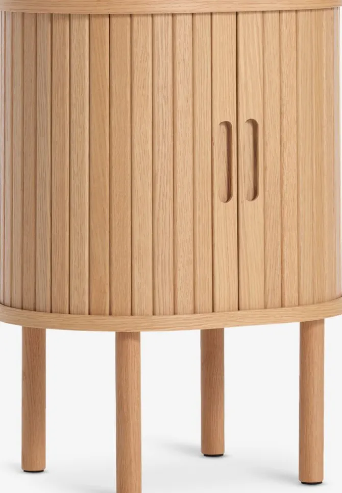 Massiv eg, egefiner og kunstfiner. Med jalousilåger. B45 x H60 x D35 cm