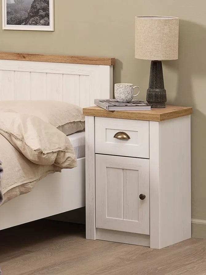Sengebord MARKSKEL 1 skuffe hvid/egefarve