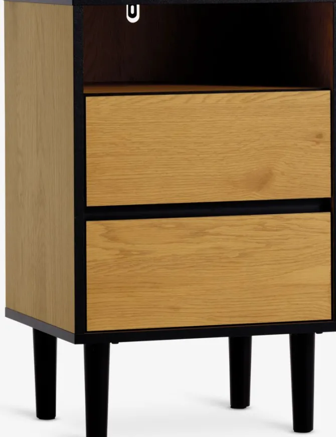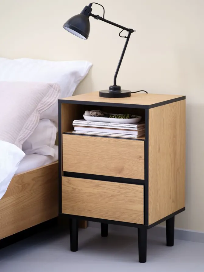 Sengebord ODENSE 2 skuffer egefarve/sort