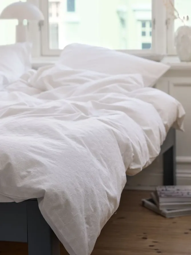 Sengetøj BIBI 140×200 hvid med broderi