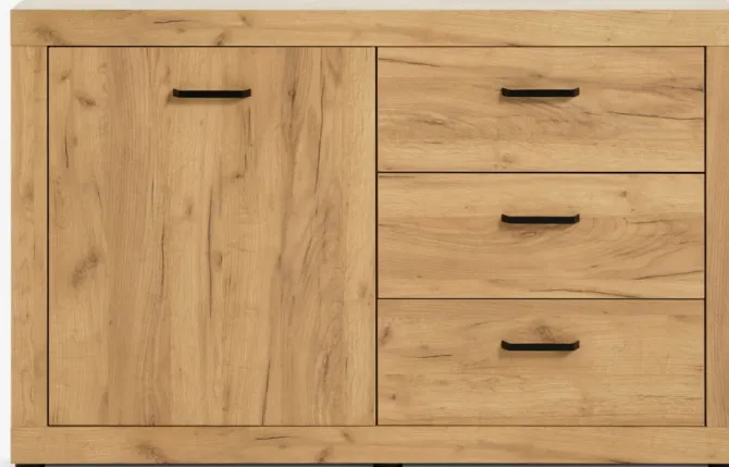 Skænk LINTRUP 1 låge 3 skuffer egefarve