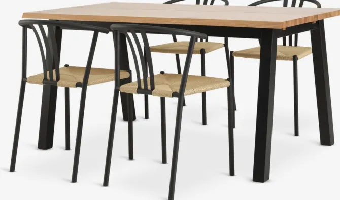 SKOVLUNDE L160 bord eg natur + 4 JYDERUP stole sort/natur