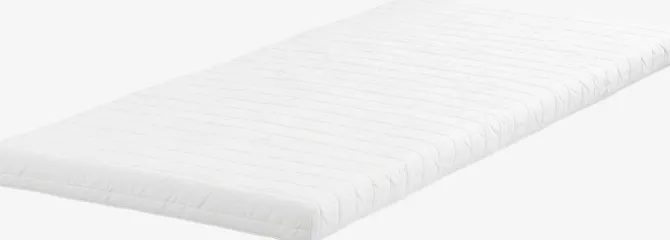 10 cm tyk skummadras 90×200 cm med kerne af purskum. Vaskbart betræk med let quiltning.