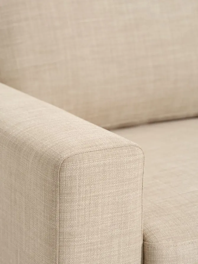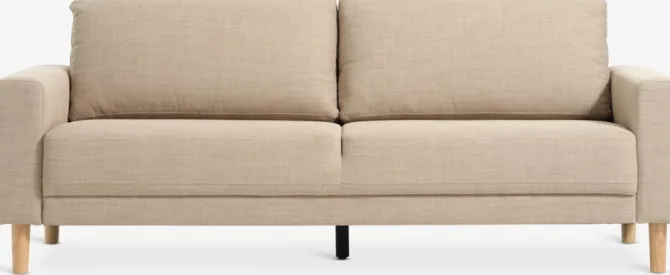 3-personers sofa i stof. Sæde- og ryghynder i skum. Ben i massivt træ. B200 x H80 x D80 cm