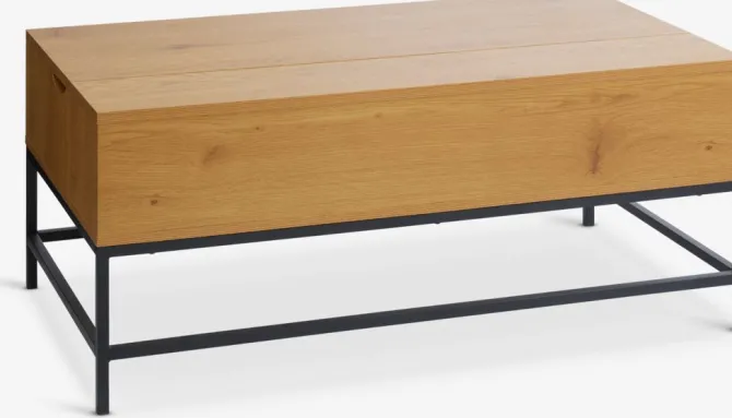 Kunstfiner og stål. Med løftbar plade og opbevaringsplads. B60 x L110 x H45/57 cm