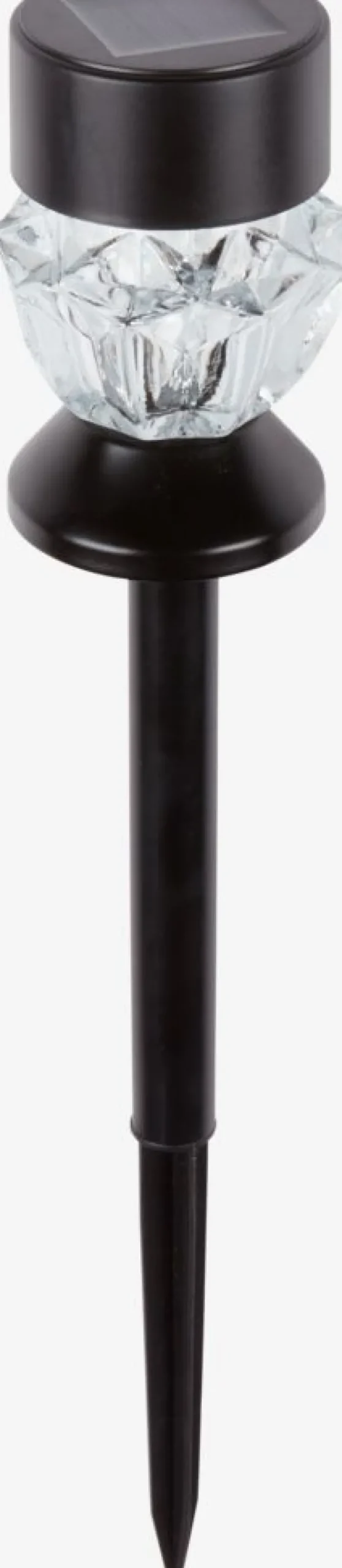 Sort solcellelampe med krystallignende glas og indbygget LED. Lampen giver op til 8 timers belysning til stier eller havebede. Lampen er placeret på et spyd, så du nemt kan placere den i jorden. Ø7 x H35 cm