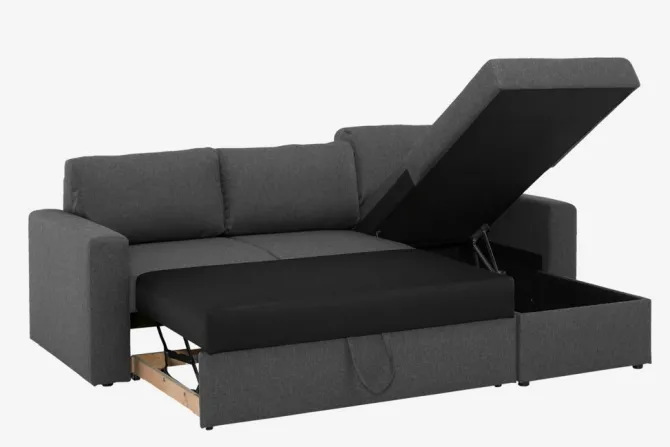 Sovesofa chaiselong MARSLEV mørkegråt stof