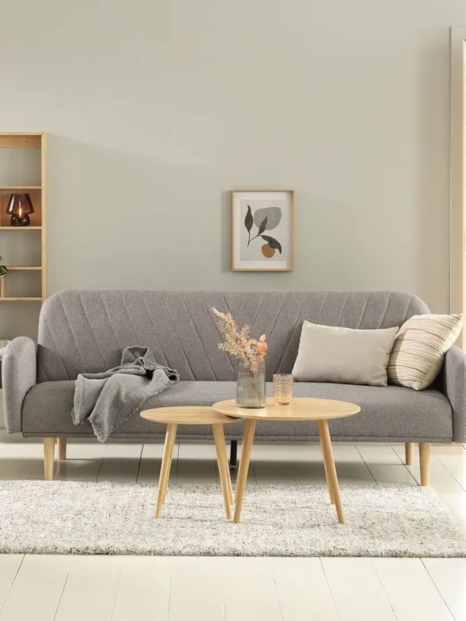 Sovesofa PARADIS lysegråt stof/egefarve
