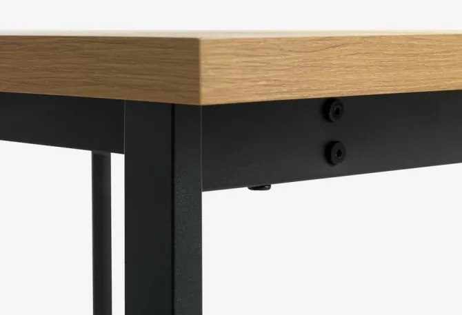 Spisebord med bordplade i kunstfiner med egetræslook og sorte ben i stål. B80 x L120 x H75 cm