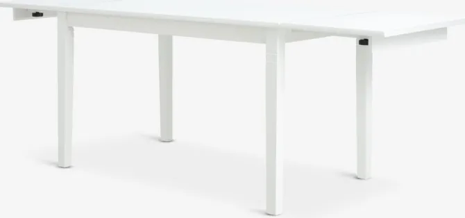 Spisebord inkl. 2 tillægsplader. Hvid bordplade og matchende ben i MDF. Bordet er lakeret for at forlænge holdbarheden. Du kan nemt forlænge bordet til enten 175 eller 220 cm for at rumme større sammenkomster. B80 x L130 x H75 cm