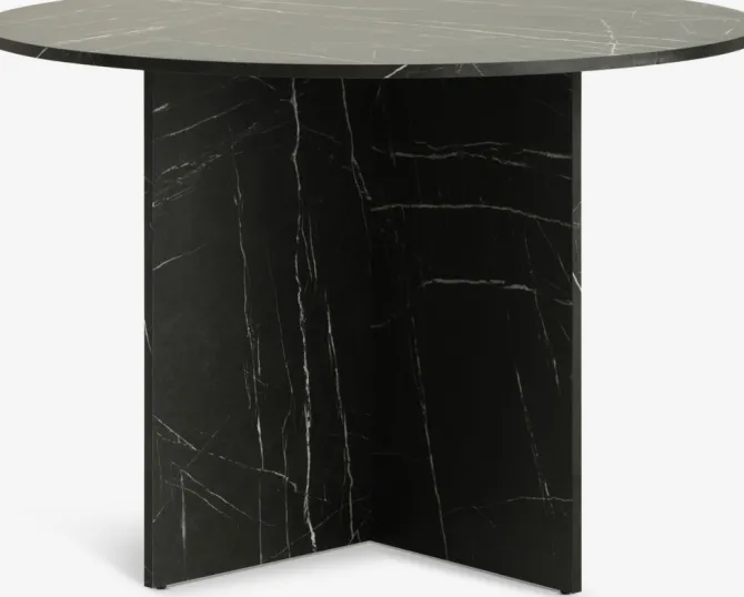 Rundt spisebord i kunstfiner med sort marmor look. Ø110 x H75 cm