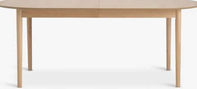 Spisebord med udtræk. Inklusiv 2 tillægsplader, som kan opbevares under bordpladen. Det ovale spisebord har bordplade i egefiner og ben i massivt træ. Træet er lakeret for at forlænge holdbarheden. Du kan nemt forlænge bordet til enten 240 eller 280 cm for at rumme større sammenkomster. B100 x L200 x H75 cm