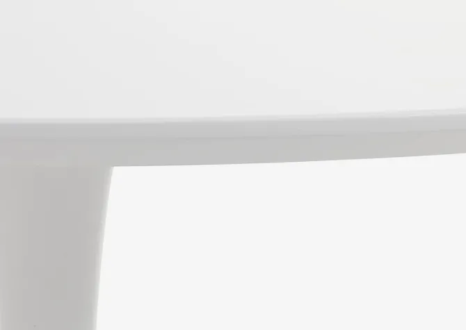 Rundt spisebord med hvid bordplade i MDF og matchende stel i stål. Bordpladen er lakeret for at forlænge holdbarheden. Ø100 x H75 cm