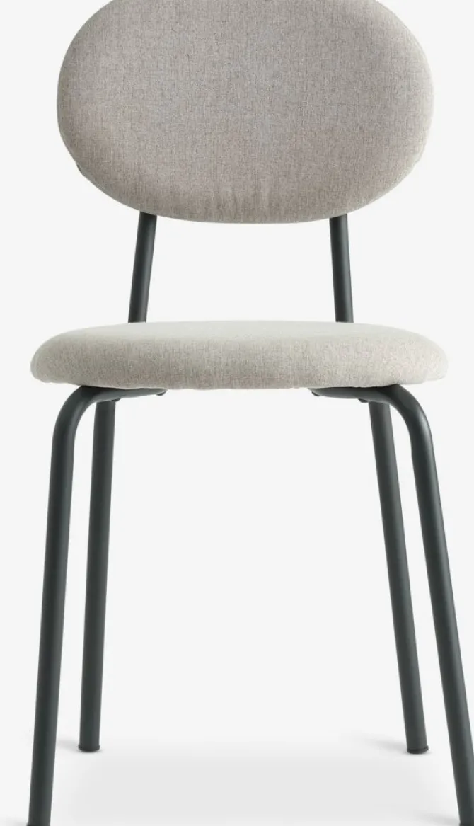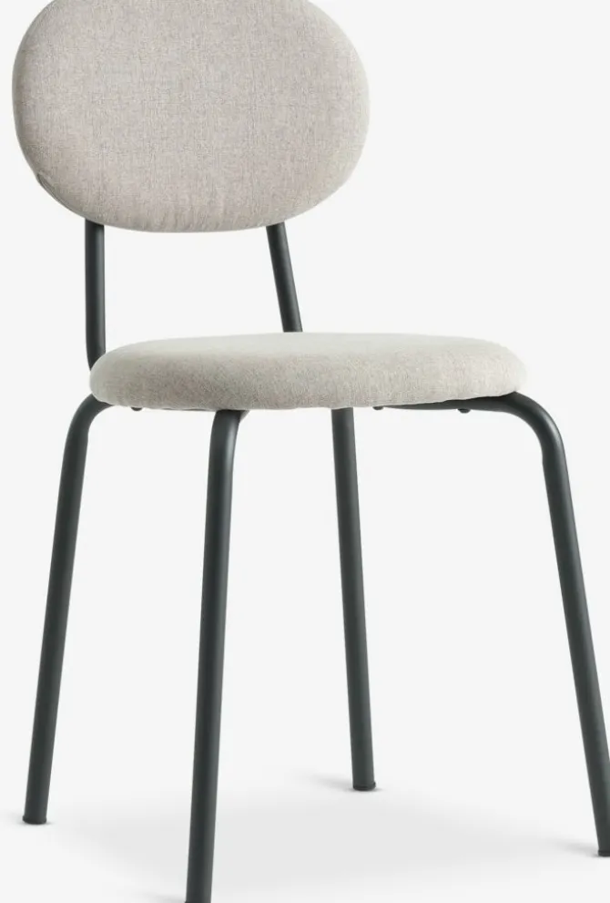 Spisebordsstol med polstret sæde og ryglæn i sandfarvet stof. Sorte ben i stål.