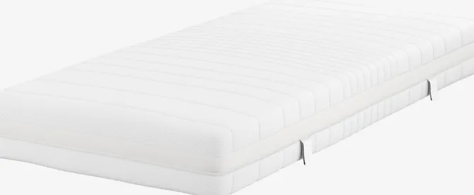 22 cm tyk springmadras 90×200 cm med pocket-fjedre 240/m², inddelt i 11 komfortzoner. Madrassen er polstret med trykaflastende memory foam og purskum på den ene side og purskum på den anden. Memory foam former sig præcist efter kroppen. Vaskbart betræk i 100% polyester (31% genanvendt) med blød, kraftig quiltning.