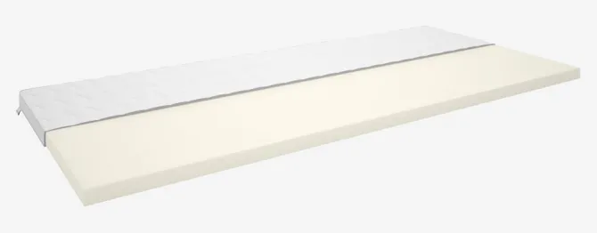 8 cm tyk topmadras 90×200 cm med kerne af trykaflastende memory foam, der former sig præcist efter kroppen. Vaskbart strækbetræk med blød, kraftig quiltning.
