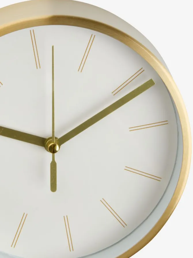 Guld ur med et enkelt, minimalistisk design. Dette ur har en ren hvid urskive og slanke guldvisere, hvilket gør det til en stilfuld tilføjelse til ethvert rum. Kræver 1 AA-batteri (medfølger ikke). Ø15 cm