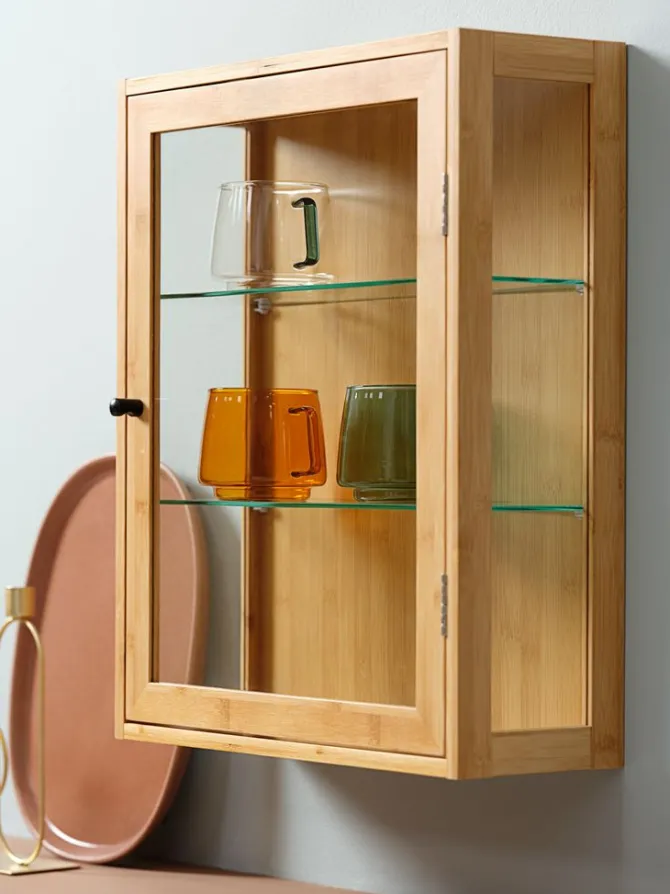 Bambus, MDF og hærdet glas. B40 x H50 x D15 cm