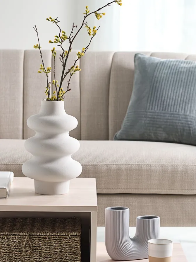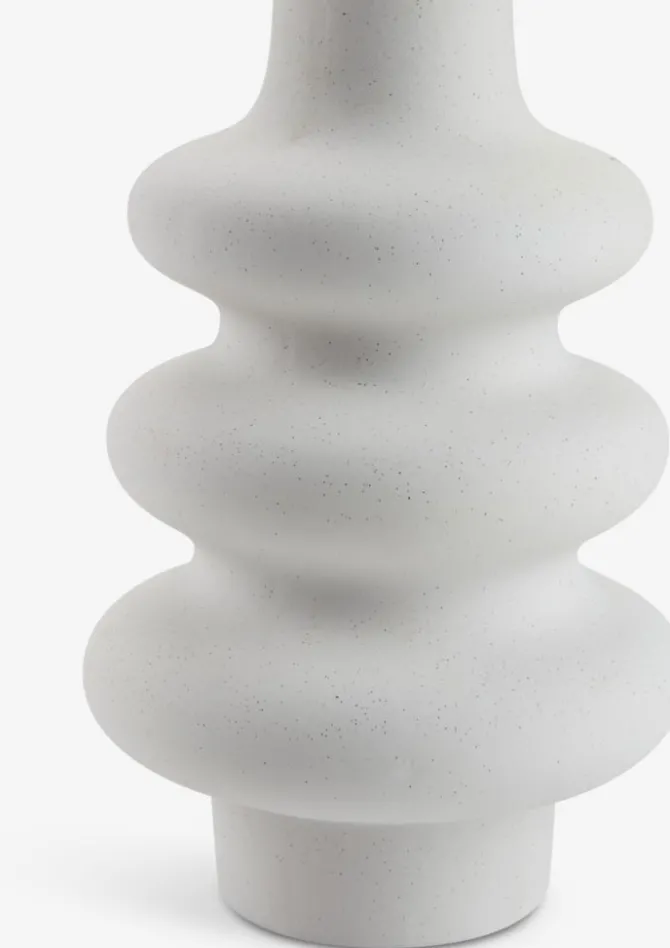 Hvid vase lavet af dolomit med en skulpturel og bølgende form, der tilføjer et kunstnerisk element til din boligindretning. Denne dekorative vase er ideel som et stilfuldt midtpunkt, både med og uden blomster. Ø20 x H30 cm