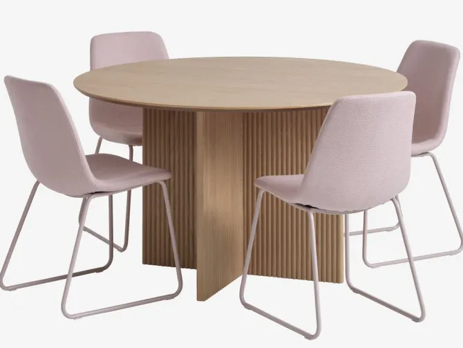VESTERBORG Ø130 bord eg + 4 SEJLSTRUP stole lys rosa