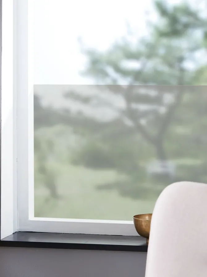 Tonet vinduesfolie som giver privatliv til vinduer og glasdøre, samtidig med at det reducerer varme og lys fra solen. 45×200 cm