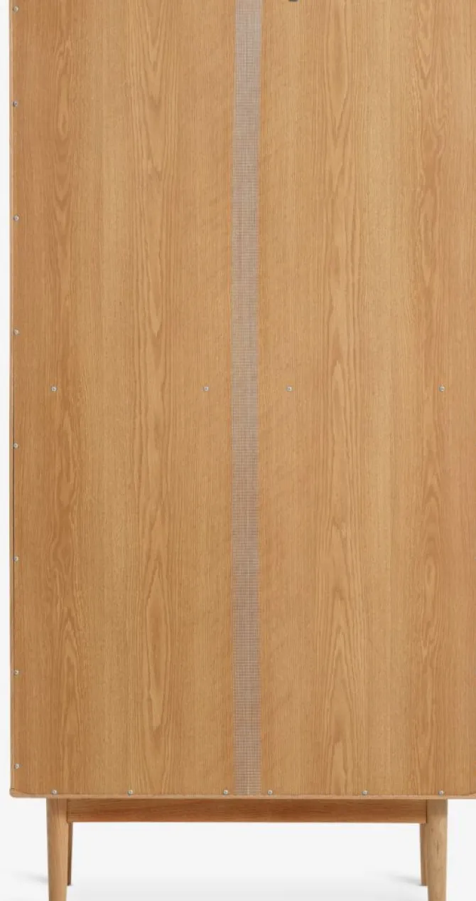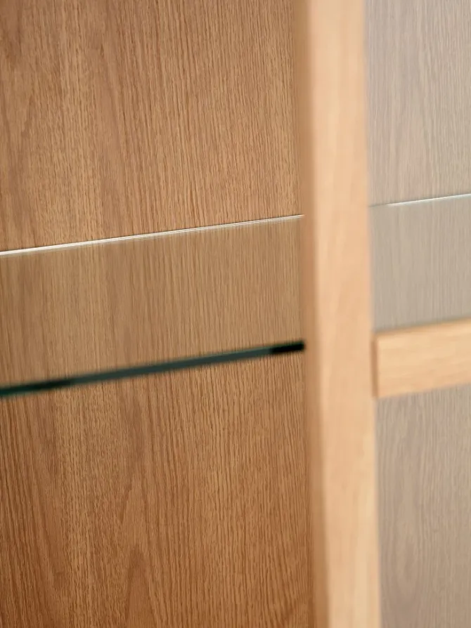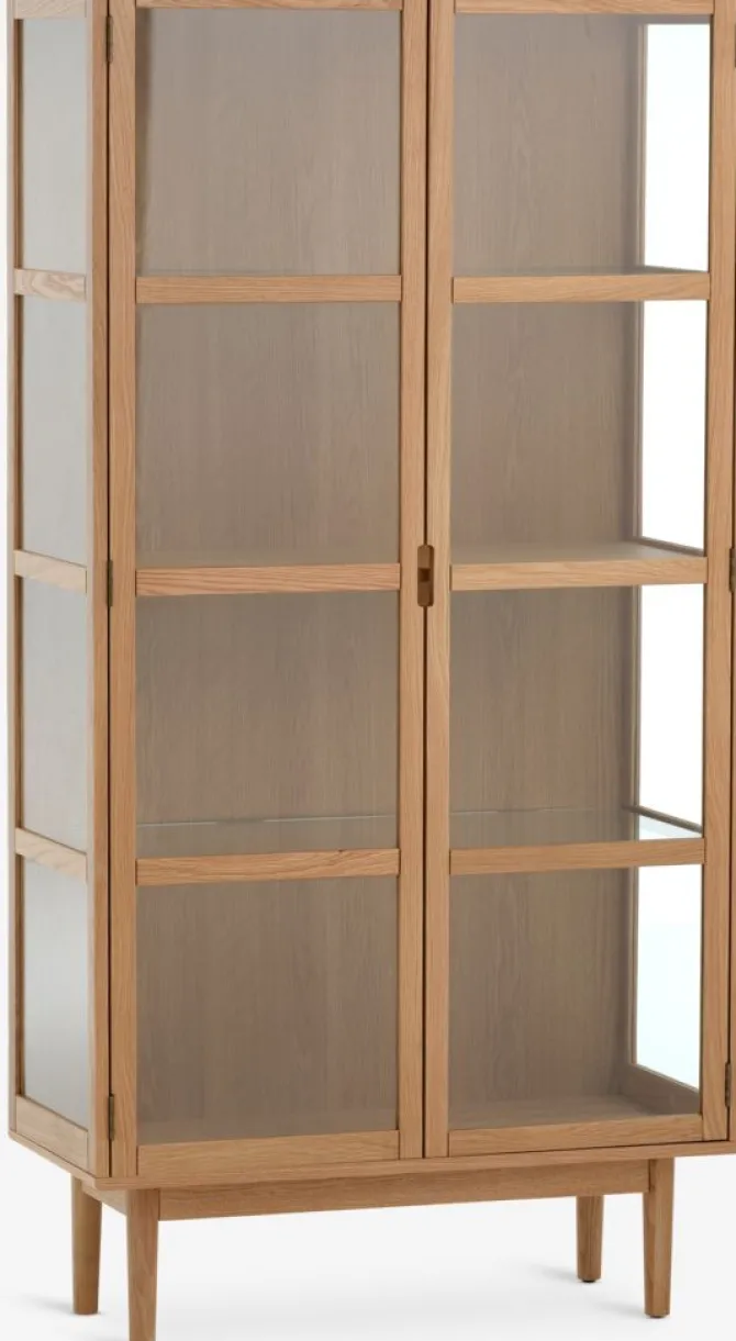 Massiv eg, egefiner og hærdet glas. B80 x H159 x D35 cm