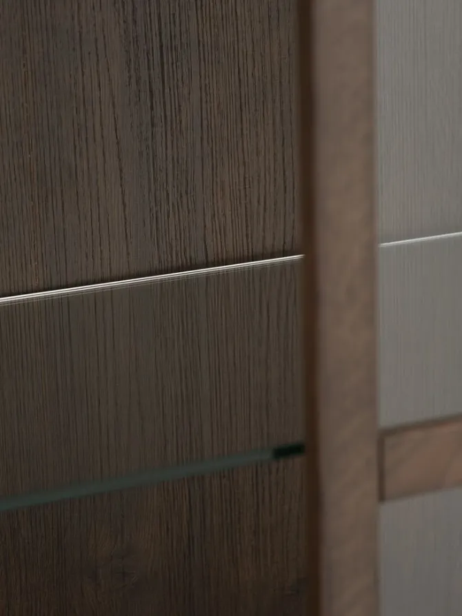 Massiv eg, egefiner og hærdet glas. B80 x H159 x D35 cm
