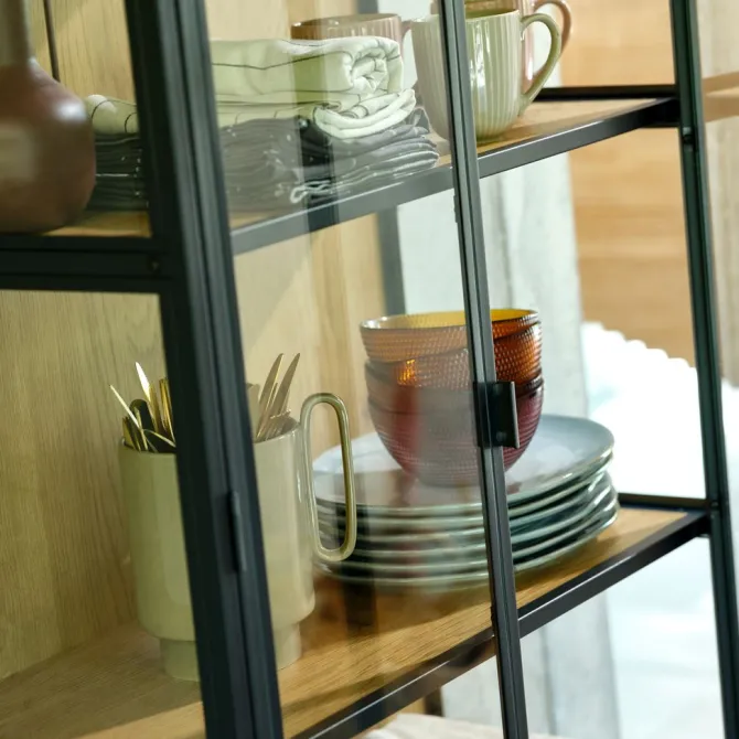 Vitrineskab TRAPPEDAL eg/sort